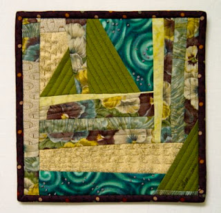 These small tiles are a wonderful place to try different ideas for bindings. Here a cord is stitched to the inner edge of the binding.